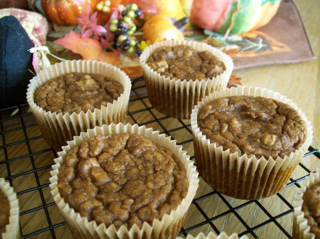 Fall is my favorite time of year. I love the bright colors outside when the leaves begin to change, the warm smells in the kitchen of seasonal vegetables roasting and the crisp feeling of the chilly air when taking the dog for a walk in the afternoon sunshine…oh and November is my birthday month (only child syndrome!). Growing up everyone in my family loved Pumpkin Pie with Cool Whip at Thanksgiving…not me, I was a Pecan Pie and vanilla ice cream girl. My taste for all things pumpkin didn’t develop until later in life but now I simply cannot get enough of it…pumpkin pancakes, pumpkin bread, pumpkin cookies, pumpkin muffins, pumpkin pie…the list is practically endless. Several years ago I found a recipe for the ultimate Thanksgiving dessert, Pumpkin Pecan Pie…it’s my new favorite but since following a paleo/primal diet I haven’t tried to adapt the recipe yet (don’t worry, the recipe WILL be adapted and posted before Thanksgiving this year!). I started my fall baking this season with these wonderful Pumpkin Pecan Pie Muffins…they are fruit sweetened, dairy free and great for breakfast, snack and even dessert!